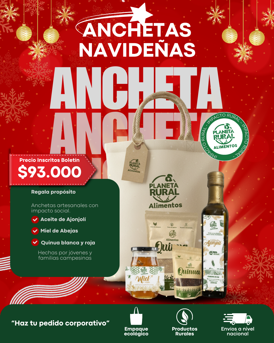 en esta navidad te invitamos a comprar la ancheta navideña de Planeta Rural compuesta por productos elaborados por jóvenes rurales y apoya de esta manera los programas de Planeta Rural.